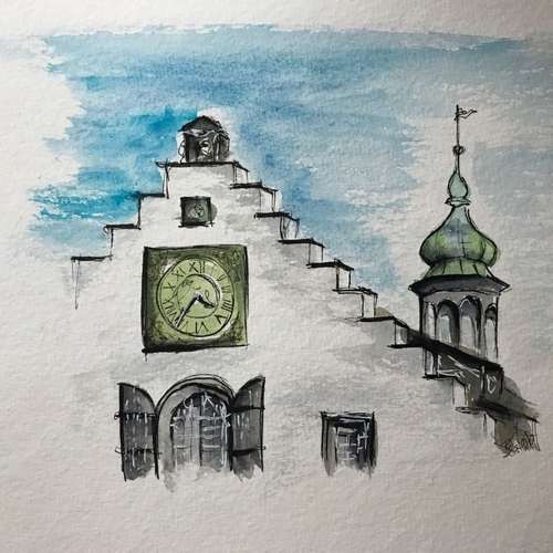 Im August mit Stadtbildern und Urban Sketching.